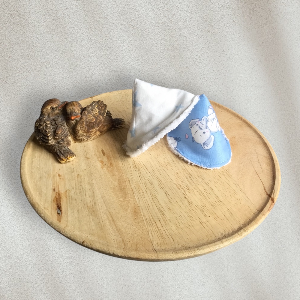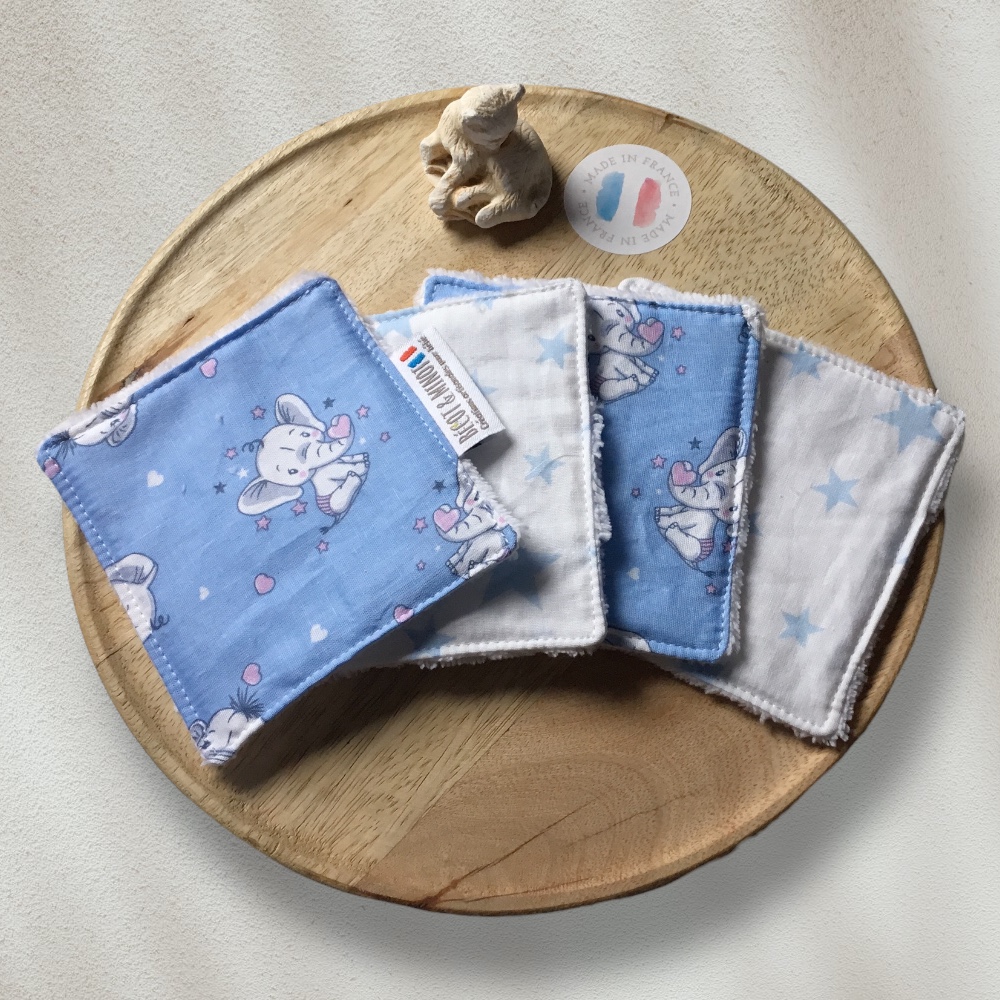- Une face bleue, parsemée de petits éléphants et de cœurs, pour une atmosphère tendre et réconfortante.