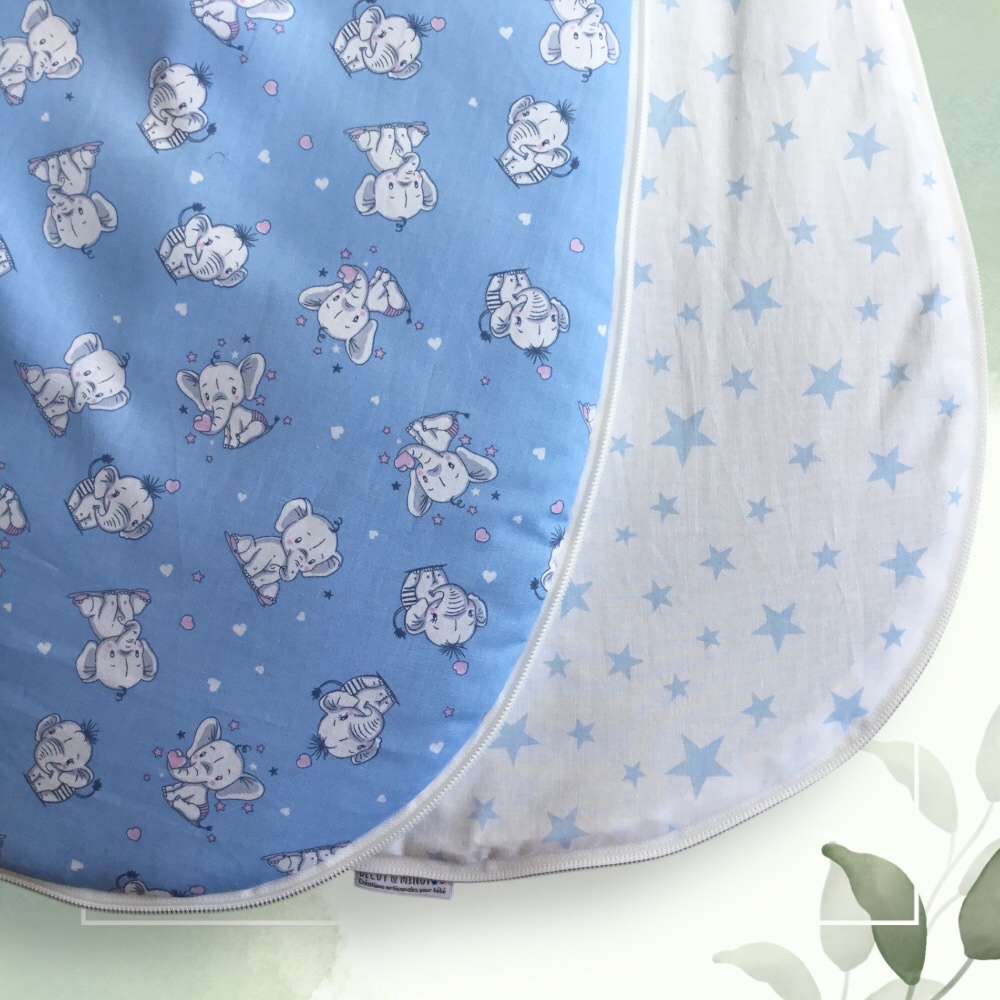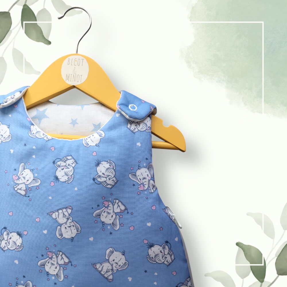 Offrez à votre enfant un sommeil doux et rassurant avec notre gigoteuse réversible Eleya. Ce modèle exclusif s’inspire d’un univers plein de tendresse où de petits éléphants, symboles de douceur et d’attachement, accompagnent bébé vers des nuits sereines, sous un ciel délicatement étoilé.